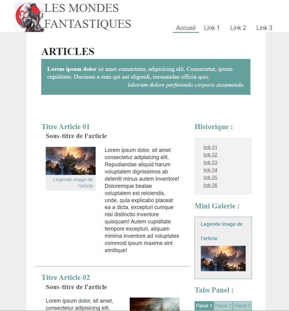 This is a school project to learn javascript. You can find inside a slider menu, a mini gallery with a magnifying glass on the image, a top-panel and an accordeon.