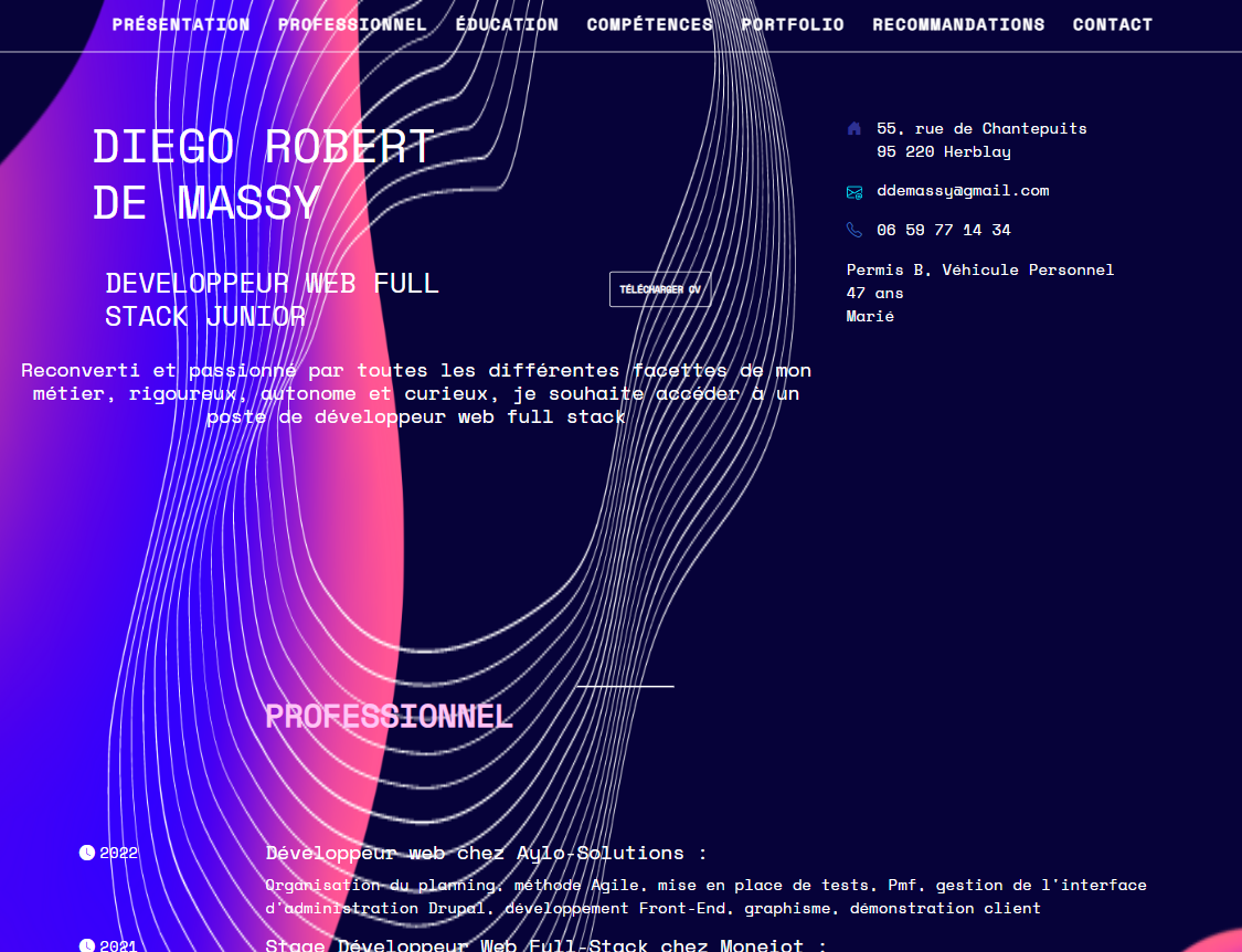In professional retraining and graduating bac + 2 web developer and Full Stack mobile web at Next Formation, I am both didactic and passionate. With my theoretical knowledge acquired during my training, I have a good command of computer and programming languages such as HTML, CSS, PHP, Javascript, JQuery, Bootstrap or frameworks like Symfony and Laravel, Node.js, NoSQL, React.js / redux, React native. I also did a two-month internship in the Carpediem-Moneiot company whose site is based on the Laravel language. Currently, I'm working in a startup Aylo to develop an application in Drupal.