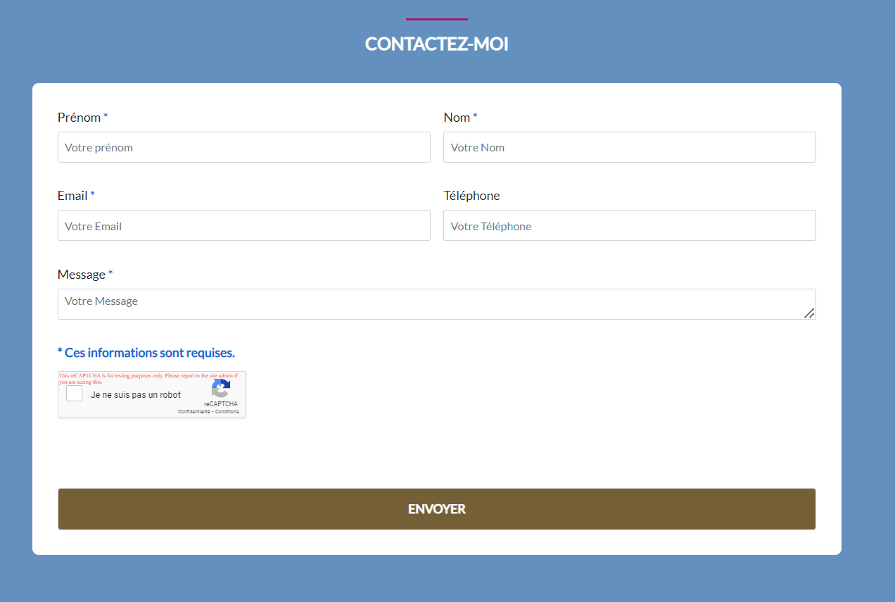 This is a simple contact form, build in HTML, CSS, PHP and Javascript. It's on Udemy in "Formation Complète Développeur Web" from John Taieb.