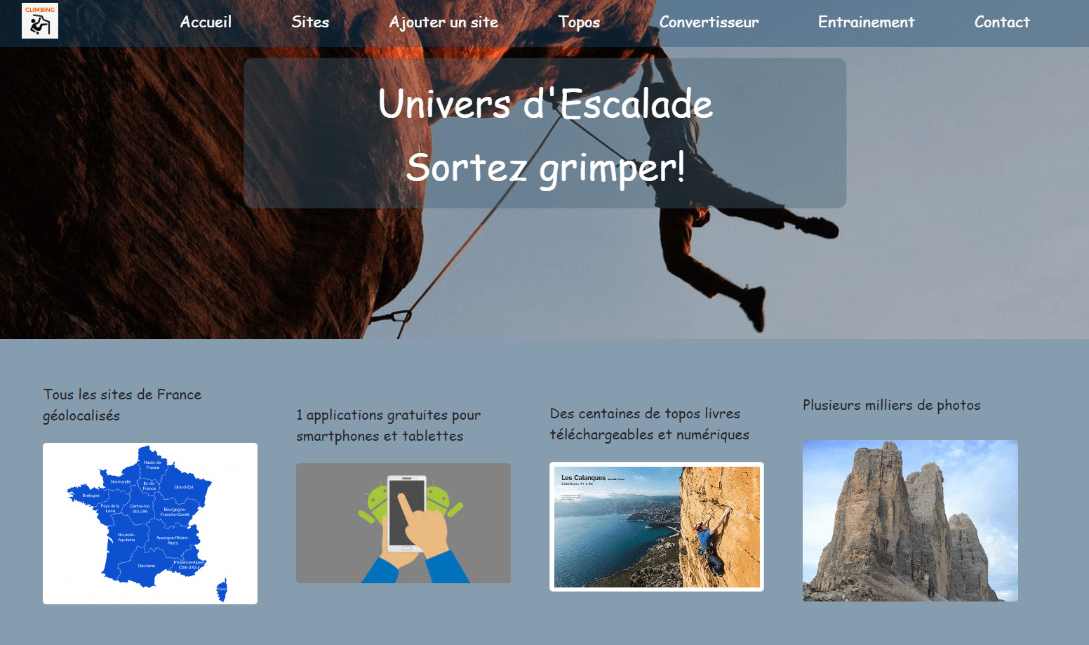 Using Symfony, SQL. You can search on a map for all the different climbing sites in France, find tips and training exercises for climbing as well as news from the best current climbers.